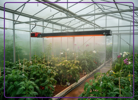 هیتر تابشی با انتقال مستقیم گرما به سطح گیاهان و تجهیزات بدون نیاز به گرم کردن حجم هوا عمل می کند و به همین دلیل این هیتر گلخانه یکی از کارآمدترین گزینه ها برای گلخانه ها است. این سیستم با مصرف انرژی کمتر، گرمای یکنواخت تری تولید کرده و از ایجاد گرد و غبار جلوگیری می کند. علاوه بر این، نبود دودکش و آلودگی، آن را به انتخابی ایمن و سازگار با محیط کشت تبدیل می سازد.