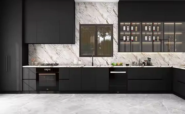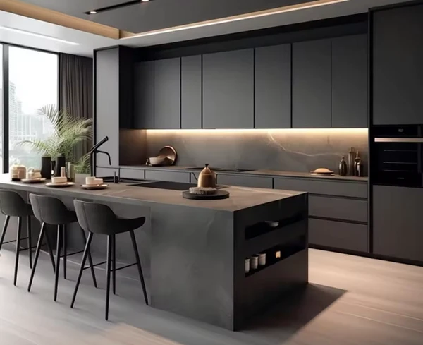 - نوع رنگ و پوشش نهایی: رنگ های مات یا نیمه براق و کیفیت روکش بر قیمت کابینت ممبران مشکی تأثیر دارد.