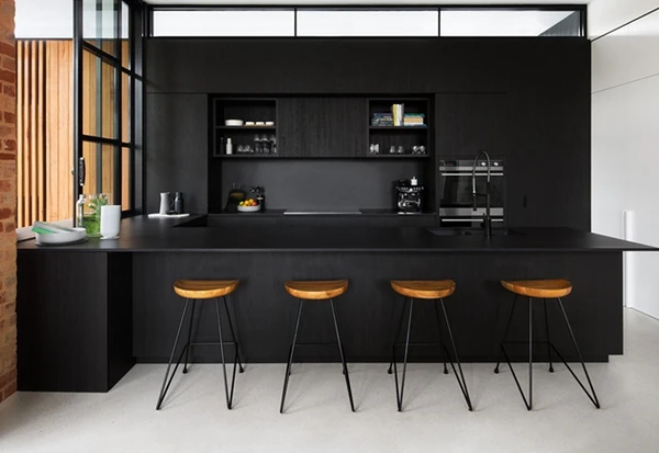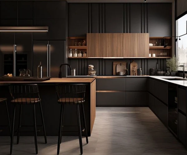 - یراق آلات و تجهیزات جانبی: استفاده از دستگیره های خاص و لولا های آرام بند، قیمت کابینت های مشکی را افزایش می دهد.