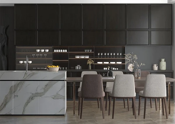 این مدل از کابینت های ممبران دارای طراحی ساده و خطوط صاف بوده و برای آشپزخانه های مینیمال و مدرن گزینه بسیار مناسبی هستند. از طرف دیگر در طراحی و ساخت ممبران مشکی مدرن معمولاً از جزئیات اضافی و حکاکی پرهیز شده و برای آن دستگیره های مخفی یا بسیار ظریف تعبیه می شود.