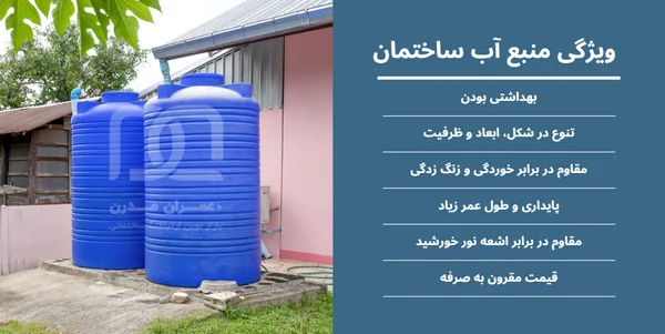 مخزن پلی اتیلن با توجه به کیفیت و ویژگی های برجسته نظیر وزن کم، حمل و نصب آسان، قیمت کم، خاصیت ضد باکتریالی و بهداشتی بودن، پایداری و طول عمر بالا و مقاوم بودن در برابر خوردگی و ضربه، بهترین گزینه برای استفاده به عنوان مخزن ذخیره آب ساختمان است. مخزن آب ساختمانی پلی اتیلن سه لایه و چهار لایه با توجه به تعداد لایه بالا و داشتن لایه های مقاوم به نور خورشید و آنتی UV برای نگهداری و ذخیره کردن آب شرب ساختمان مناسب می باشند.