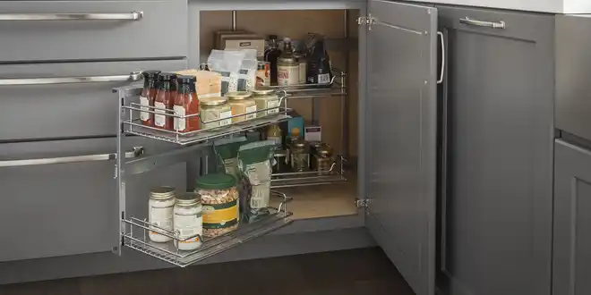 با توجه به فضای موجود و نیازهای ذخیره سازی، نوع کابینت را انتخاب کنید. برای مثال؛ اگر فضای گوشه کوچک است، طبقات چرخان مناسب تر هستند. برای آشپزخانه های بزرگ تر، کابینت های کشویی یا ایستاده کارایی بیشتری دارند.