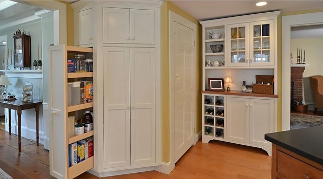 کابینت کمدی کنج ، فضای قابل توجهی را برای نصب تجهیزاتی مانند فر، مایکروویو یا محوطه نگهداری مواد غذایی و بهداشتی فراهم می کند.