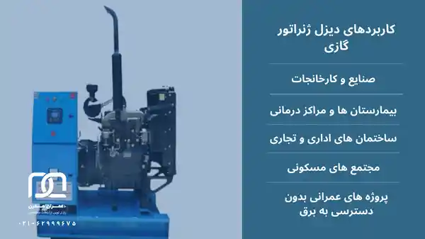 ژنراتور پایه گاز سوز کاربردهای گسترده ای دارد. به عنوان مثال، می توان در صنایع و کارخانه ها برای تامین برق اضطراری یا تولید برق در ساعات پیک مصرف از ژنراتور گازسوز استفاده کرد. در بیمارستان ها و مراکز درمانی جهت تضمین عملکرد تجهیزات حیاتی در صورت قطع برق و در ساختمان های اداری و تجاری به منظور جلوگیری از اختلال در کسب و کارها، استفاده از دیزل ژنراتور گازی امری حیاتی است. همچنین در مناطق دورافتاده یا بدون دسترسی به برق مانند پروژه های عمرانی، کمپ های موقت یا روستاهای فاقد برق سراسری می توان از مزایای دیزل ژنراتور گازسوز بهره مند شد.