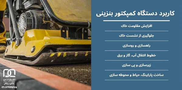 کمپکتور بنزینی ، یکی از ابزار های مهم در عملیات عمرانی، به خصوص راهسازی و پی سازی است که کار کوبیدن و فشرده سازی خاک یا آسفالت را انجام می دهد. کوبیدن و فشرده سازی خاک به خروج هوای موجود بین ذرات خاک کمک می کند و موجب کاهش خلل و فرج موجود در ساختار آن می شود. در واقع این ابزار با کوبش و کاهش حجم خاک، افزایش تراکم و استحکام آن را در پی دارد و از بروز نشست در خاک جلوگیری می کند.