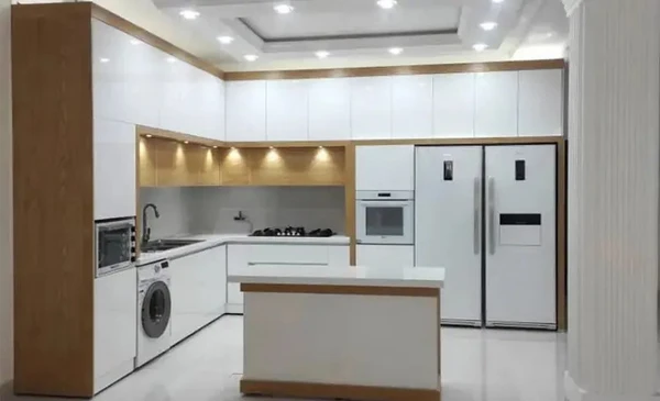 کابینت ملامینه براق یکی از محبوب ترین گزینه ها در طراحی آشپزخانه های مدرن است. این کابینت ها به دلیل داشتن سطح صاف و براق، جلوه ای شیک و لوکس به فضای آشپزخانه می بخشند و در عین حال، هزینه مقرون به صرفه ای نسبت به برخی گزینه های دیگر مانند کابینت های چوبی دارند.