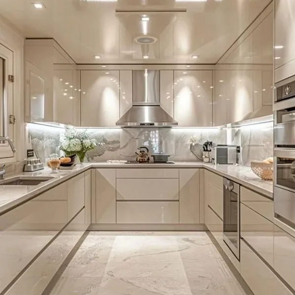 کابینت پلی اورتان براق یکی از مدرن ترین و شیک ترین کابینت ها برای آشپزخانه های امروزی است که با درخشندگی خیره کننده و سطحی صاف، جلوه ای لوکس و جذاب به فضا می بخشد. این کابینت ها به دلیل پوشش مقاوم پلی اورتان، در برابر رطوبت، حرارت و خط و خش دوام بالایی دارند و به راحتی تمیز می شوند. اگر به دنبال ترکیبی از زیبایی، ماندگاری و کیفیت هستید، کابینت های پلی اورتان براق میتوانند گزینه ای ایده آل برای شما باشند.