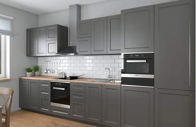 کابینت های پلی اورتان طوسی مات، سطحی ملایم و بدون انعکاس نور دارند که به آشپزخانه جلوه ای شیک و آرامش بخش می دهد. این مدل در برابر لکه و اثر انگشت مقاوم تر است، اما نسبت به نوع براق، دوام و مقاومت سطحی کمتری دارد. به همین دلیل، برای افزایش ماندگاری آن از لایه های محافظتی بیشتر استفاده می شود.