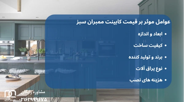 قیمت کابینت ممبران سبز به عوامل مختلف و بسیار زیادی بستگی دارد که می توان به جنس ام دی اف، کیفیت روکش PVC، طراحی و سبک کابینت، ابعاد و اندازه، تولید کننده کابینت، نوع و کیفیت یراق آلات، تکنولوژی ساخت و هزینه های مربوط به حمل و نقل و نصب بستگی دارد.