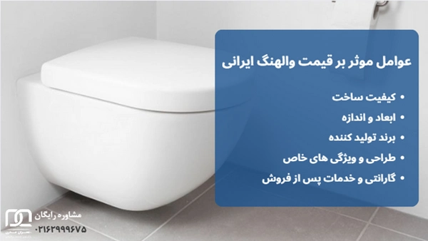 قیمت وال هنگ ایرانی به عوامل مختلف و بسیار زیادی بستگی دارد به همین دلیل نیز نمی توان یک مبلغ مشخص را برای تهیه این محصول در نظر گرفت. مهم ترین عوامل مؤثر در تعیین قیمت توالت فرنگی وال هنگ ایرانی عبارت اند از: