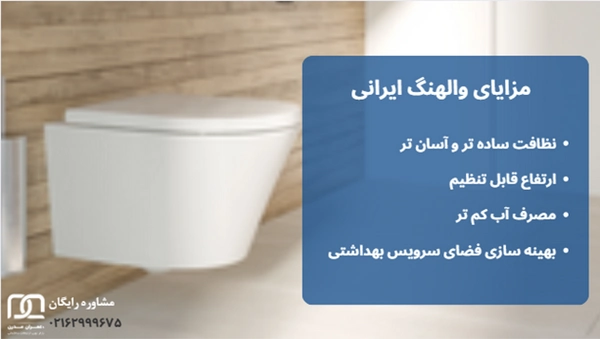 خرید و نصب والهنگ ایرانی مزایا و فواید بسیار زیادی را برای شما به همراه خواهد داشت. این نوع از توالت ها به دلیل برخورداری از طراحی خاص و منحصر به فرد، نسبت به توالت فرنگی های دیگر، امکانات بیشتری را برای افراد ارائه می دهند. والهنگ نوعی توالت فرنگی است که فاقد پایه های زمینی بوده و بر روی دیوار نصب می شود. طراحی خاص و نوین وال هنگ ایرانی باعث می شود تا نصب این توالت ها فضای کم تری را از سرویس بهداشتی اشغال کند. به همین دلیل هم اگر فضای سرویس بهداشتی شما کوچک است، توالت فرنگی والهنگ ایرانی گزینه بسیار مناسبی برایتان خواهد بود.