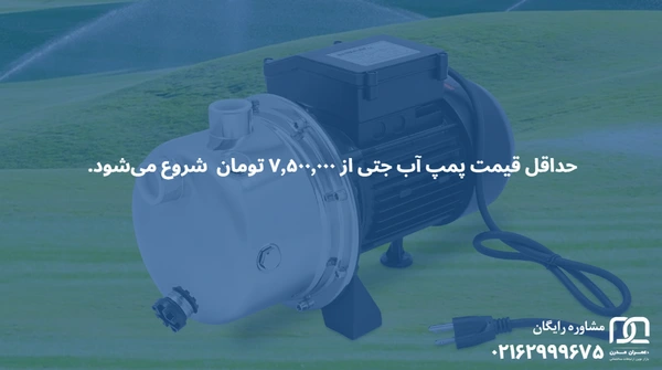 پمپ آب جتی در ابتدای سال ۱۴۰۴ شروع قیمتی از ۰۰۰,۵۰۰,۷ تومان دارد و این عدد بسته به توان، برند و سایر مشخصات افزایش می یابد.