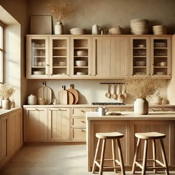 ظاهر طبیعی و زیبای صفحه کابینت طرح چوب روشن