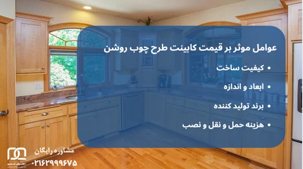 قیمت کابینت طرح چوب روشن به عوامل مختلفی همچون جنس و کیفیت متریال، نوع روکش و طرح چوب، ابعاد و متراژ کابینت، یراق آلات و اتصالات بهکار رفته، طراحی و سبک کابینت، برند و شرکت سازنده، هزینه نصب و اجرا، میزان سفارشی سازی و جزئیات اضافی و… بستگی دارد. به همین سبب نیز نمی توان یک قیمت مشخص و معین را برای خرید این نوع از کابینت ها تعیین کرد. اما در نظر داشته باشید قیمت کابینت طرح چوب بسیار پایین تر از قیمت کابینت چوبی است.