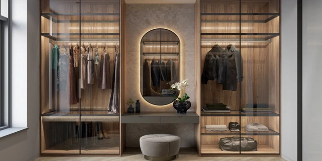- طراحی سفارشی و منحصر به فرد: طراحی مدل کمد دیواری لوکس کاملاً بر اساس نیاز، ابعاد دقیق فضا و سبک دکوراسیون منزل انجام می شود. در اغلب موارد، طراحان حرفه ای برای هماهنگی بیشتر با فضای داخلی، جزئیات خاصی مانند قاب بندی، منبت کاری یا نور پردازی مخفی را برای کمد دیواری لاکچری در نظر می گیرند.