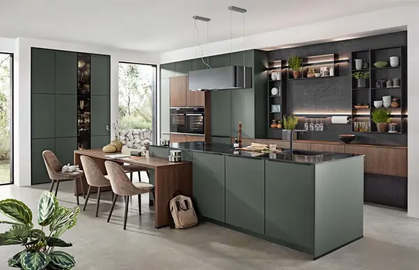 ترکیب کابینت های گلاس مات با قفسه های باز برای نمایش ظروف دکوری، هم از نظر زیبایی شناسی و هم از نظر کاربردی بودن، برای آشپزخانه های امروزی انتخابی درست و خلاقانه محسوب می شود.