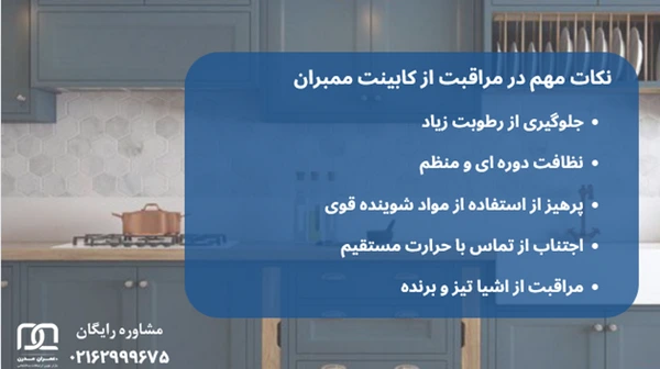 در ادامه نکات مهم مراقبت از کابینت ممبران آورده شده است.