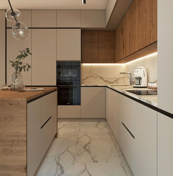 استفاده از دستگیره های مخفی به شما کمک می کند تا ظاهری تمیز و یکدست ایجاد کنید. این طراحی باعث می شود فضای کوچک آشپزخانه شما مرتب تر و بزرگ تر به نظر برسد.