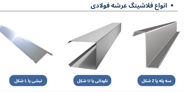 با توجه به شرایط و عوامل مختلف موثر بر ساختمان نمی توان از یک نوع فلاشینگ عرشه فولادی برای تمام ساختمان ها استفاده کرد. از این رو انواع مختلفی از فلاشینگ عرشه فولادی طراحی و تولید می شوند که با توجه به خصوصیات هر کدام و نیاز های سازه می توان از آن ها استفاده کرد. فلاشینگ سقف عرشه فولادی دارای مدل ها و اشکال مختلفی است که بسته به نیاز و شرایط مورد استفاده قرار می گیرد. فلاشینگ نبشی یا L شکل، نوعی فلاشینگ است که در محل اتصال سقف و دیوار و درز ها و لبه های سقف عرشه فولادی استفاده می شود. شکل دیگر فلاشینگ ها به شکل ناودانی یا U شکل است. از این فلاشینگ عمدتا در نمای ساختمان استفاده می شود. فلاشینگ سه پله یا Z شکل، نوع دیگر فلاشینگ است.
