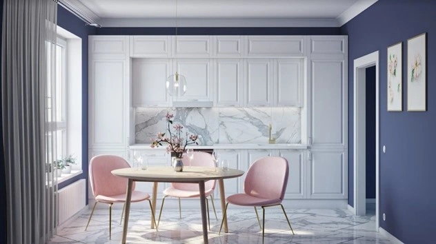 رنگ سورمه ای یکی از انتخاب های محبوب در طراحی کابینت نئوکلاسیک پله ای است که در سال های اخیر بسیار رایج شده است. ترکیب سورمه ای با رنگ های روشن مثل سفید یا کرم، باعث تعادل در فضای آشپزخانه می شود.
