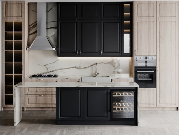 - کابینت نئوکلاسیک چوبی با طراحی منعطف خود، هم برای آشپزخانه های کوچک و هم برای فضاهای بزرگ قابل اجرا هستند و به دلیل داشتن ارتفاع بلند، فضای ذخیره سازی کافی را فراهم می کنند.