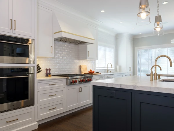 - یکی از ویژگی های مهم این سبک، رعایت تقارن در طراحی کابینت ها، قفسه ها و حتی جزیره آشپزخانه است که به ایجاد هارمونی و نظم در فضا کمک می کند.