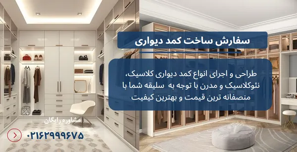 سفارش ساخت کمد دیواری به صورت اختصاصی، این امکان را فراهم می کند که طراحی، ابعاد، متریال و رنگ بندی کمد دقیقا مطابق با نیازها و سلیقه شما باشد. با سفارش کمد اختصاصی می توانید از فضاهای پرت و غیرقابل استفاده خانه بهترین بهره را ببرید و برای هر بخش از کمد، مثل جای لباس، کفش، چمدان یا وسایل کوچک برنامه ریزی دقیقی داشته باشید. همچنین، امکان هماهنگی کامل با دکوراسیون داخلی، انتخاب جزئیات دلخواه و استفاده از متریال باکیفیت از مزایای دیگر این روش است که در نهایت به کارایی بالا و زیبایی منحصر به فرد منجر می شود.