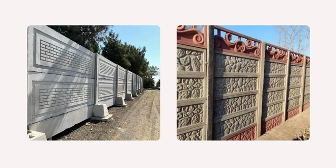 در این سازه ها، بافت و طرح نما در مرحله تولید روی پنل ها اعمال می شود. بنابراین نیاز به خرید سایر مصالح جهت نماسازی، دستمزد کارگر برای نما، ملات ریزی نیست. بنابراین کارفرمایان با بودجه مشخص می توانند محوطه ویلا یا باغ خود را حصارکشی کنند و نمایی زیبایی داشته باشند.