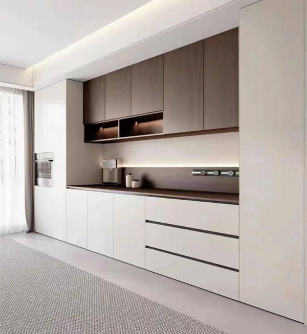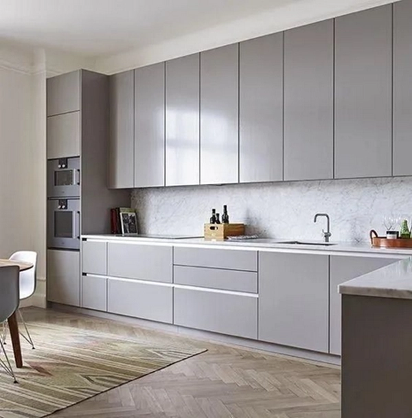 مدل کابینت پی وی سی مینیمال با دارا بودن طراحی ساده و خطوط روان باعث زیبایی قابل توجهی می شود. رنگ های نزدیک به تیره مانند خاکستری، در طراحی کابینت مینیمال بسیار کاربردی است.