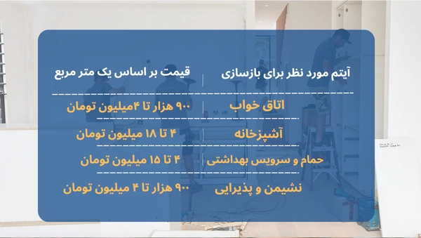 شهر محل قرارگیری خانه یکی از این عوامل است، چرا که دستمزد نیروی کار و هزینه مواد اولیه در شهرهای مختلف متفاوت می باشد. همچنین، متراژ خانه و حجم بازسازی نیز نقش تعیین کننده ای در محاسبه هزینه ها دارند، زیرا هرچه فضای مورد نظر بزرگ تر و تغییرات گسترده تر باشد، طبیعتاً هزینه ها نیز افزایش می یابد.