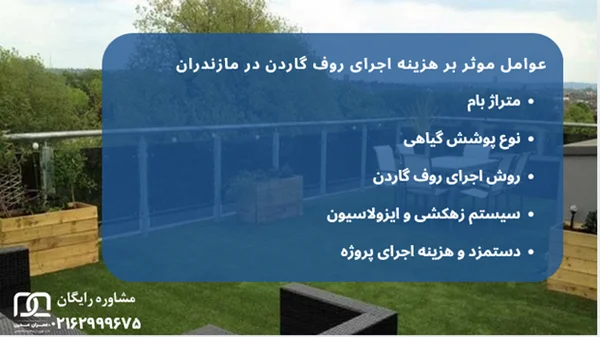 هزینه های مربوط به اجرای روف گاردن در مازندران به عوامل مختلف و بسیار زیادی بستگی دارد. به همین دلیل نمی توان یک قیمت مشخص و معین را برای انجام این کار در نظر گرفت. مهم ترین و موثر ترین فاکتور ها در تعیین هزینه اجرای روف گاردن مازندران عبارت اند از: