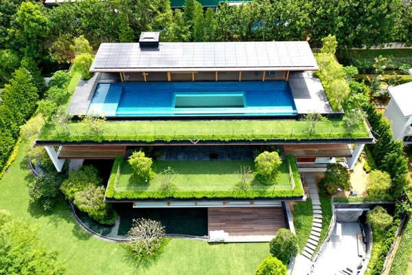 - فضای سبز در کنار استخر روف گاردن می تواند به کاهش دمای پشت بام و صرفه جویی در انرژی ساختمان کمک کند، در حالی که استخر نیز می تواند با تکنیک های مدرن، کارآمد طراحی شود.