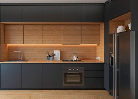 کابینت دودی چوب به دلیل ترکیب رنگ خاص و بافت طبیعی چوب، جلوه ای شیک و مدرن به آشپزخانه می بخشد. رنگ دودی نه تنها به فضا عمق می دهد، بلکه احساس لوکس و خاصی را در محیط ایجاد می کند. این ویژگی برای هر فردی جذاب و وسوسه انگیز بوده و تمایل افراد برای خرید و نصب کابینت های دودی چوب را افزایش می دهد. این کابینت ها به دلیل داشتن خطوط طبیعی چوب، حس گرما و صمیمیت را در کنار زیبایی مدرن حفظ می کنند و برای افرادی که به دنبال طراحی داخلی منحصر به فرد هستند، انتخابی عالی محسوب می شوند.
