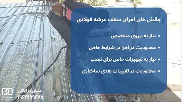 اجرای سقف عرشه فولادی در اسکلت فلزی در کنار تمام مزایایی که دارد، با چالش ها و محدودیت هایی همراه است. برخی از رایج ترین چالش های اجرای این نوع از سیستم های سقفی عبارت اند از: