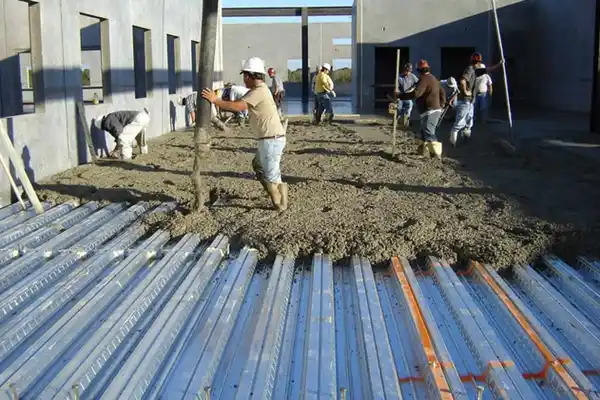 - پس از نصب گل میخ ها، بتن ریزی بر روی ورق های فلزی انجام می شود تا سقف شکل گرفته و استحکام نهایی به دست آید.