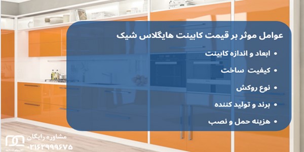 بی شک هر فردی تمایل دارد تا کابینت لاکچری هایگلاس برای آشپزخانه خود تهیه کند. اما یکی از مهم ترین فاکتور هایی که قبل از خرید کابینت هایگلاس ساده و شیک باید در نظر گرفته شود، قیمت آن است. این محصولات در بازه های قیمت متنوعی به بازار عرضه می شوند. عواملی همچون ابعاد و اندازه، کیفیت ساخت، نوع روکش، نوع و کیفیت یراق آلات قیمت نهایی این محصولات را تحت تاثیر قرار می دهد. همچنین اگر تمایل دارید تا کابینت هایگلاس ساده و شیک برای آشپزخانه خودتهیه کنید، باید هزینه های مربوط به نصب آن را نیز در نظر بگیرید.