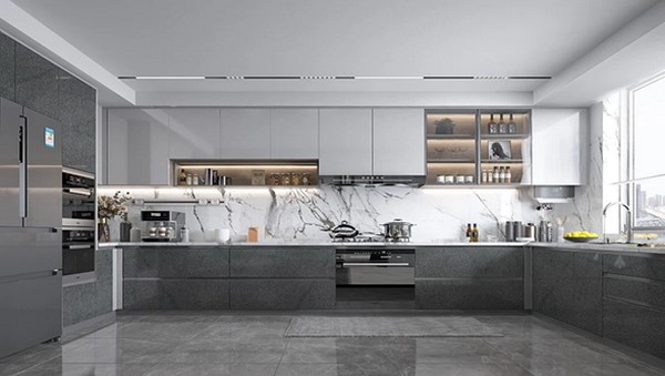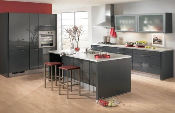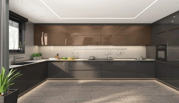 از طرف دیگر تعداد قابل توجه ای از افراد در انتخاب کابینت های گلاس شیک ، رنگ های تیره تر مثل مشکی، زغالی، نوک مدادی و سرمه ای تیره را ترجیح می دهند. این رنگ ها معمولاً با دستگیره های طلایی یا نقره ای و کانتر های سنگی روشن ترکیب شده و تضاد بسیار زیبا و جذابی در محیط ایجاد می کنند.