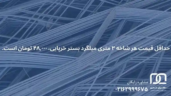 در نیمه دوم سال ۱۴۰۴ قیمت شاخه ۳ متری میلگرد بستر خرپایی ۵/۵ ، ۴۸,۰۰۰ تومان و قیمت شاخه ۳ متری میلگرد بستر خرپایی ۱۱ حدود ۵۰,۰۰۰ تومان برآورد شده است. این قیمت با توجه به عرض میلگرد بستر خرپایی که ۵/۵ ، ۱۱ و یا ۱۵ سانتی متر باشد، تعیین می گردد. همچنین پارامترهایی مانند تولید کننده، فاصله محل کارخانه تا پروژه، هزینه های مربوط به حمل و نصب نیز بر قیمت میلگرد بستر خرپایی تاثیر می گذارند. جهت استعلام قیمت میلگرد بستر خرپایی و دریافت مشاوره رایگان، هم اکنون با کارشناسان فروش عمران مدرن به شماره ۰۲۱۶۲۹۹۹۶۷۵ تماس حاصل فرمایید.