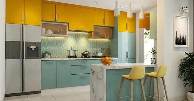 - انتخاب رنگ دوم با توجه به کف، دیوار و جزئیات دیگر آشپزخانه