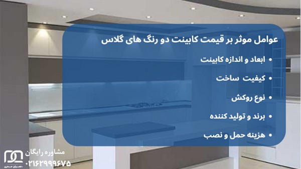 عوامل متعددی همچون متراژ کابینت ها، کیفیت و تکنولوژی ساخت، نوع روکش، برند و تولید کننده، هزینه های حمل و نصب و… بر روی قیمت کابینت هایگلاس با دو رنگ تاثیر می گذارند. به همین دلیل نمی توان یک قیمت مشخص برای خرید این محصولات تعیین کرد. از این رو پیشنهاد می شود قبل از خرید کابینت دو رنگ های گلاس و سایر کابینت ها، قیمت محصول مد نظر خود را از چندین فروشگاه معتبر استعلام بگیرید و در نهایت خرید خود را از فروشگاهی که قیمت های منصفانه تری دارد، نهایی کنید.