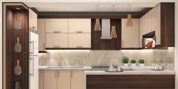 - کرم و قهوه ای روشن: این ترکیب رنگ، جزو رایج ترین و پر طرفدار ترین ترکیب رنگ ها در آشپزخانه های بزرگ هستند و نمای عالی برای فضاهایی با دکور سنتی یا نیمه مدرن، به ارمغان می آورند.