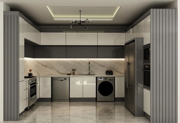 - سفید و طوسی: کابینت دو رنگ سفید و طوسی هایگلاس ترکیبی از سادگی و مدرنیته را به همراه خواهد داشت. این کابینت ها بسیار شیک بوده و برای سبک های مینیمال مناسب اند.