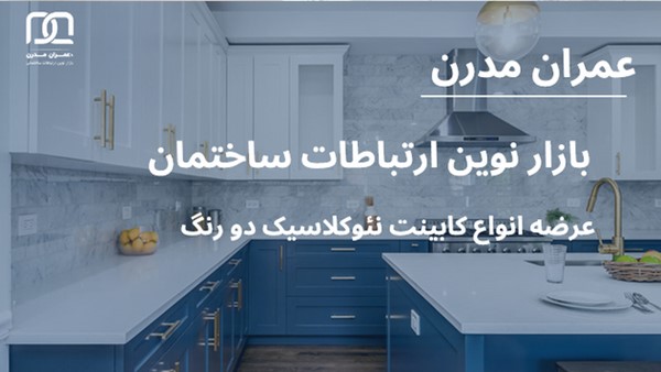 شایان ذکر است شرکت عمران مدرن از طریق همکاری با برند ها و تولید کننده های نام آشنا و معتبر انواع مدل کابینت نئوکلاسیک دو رنگ را با بهترین قیمت و کیفیت ساخت بسیار بالا به مشتریان خود عرضه می کند. شما می توانید برای کسب اطلاعت بیشتر در این زمینه با کارشناسان فروش این مجموعه به شماره ۰۲۱۶۲۹۹۹۶۷۵ تماس بگیرید.