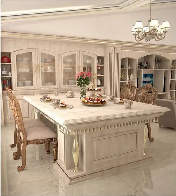 در آشپزخانه هایی با دکوراسیون کلاسیک به کارگیری جزئیات بیشتر به چشم نوازی فضا کمک می کند. بنابراین در طراحی کابینت های وکیوم اصولا طراحان به جزئیات اهمیت بیشتری می دهند. مثلا استفاده از منبت کاری های مختلف در طراحی کابینت وکیوم کلاسیک بسیار پر اهمیت است.