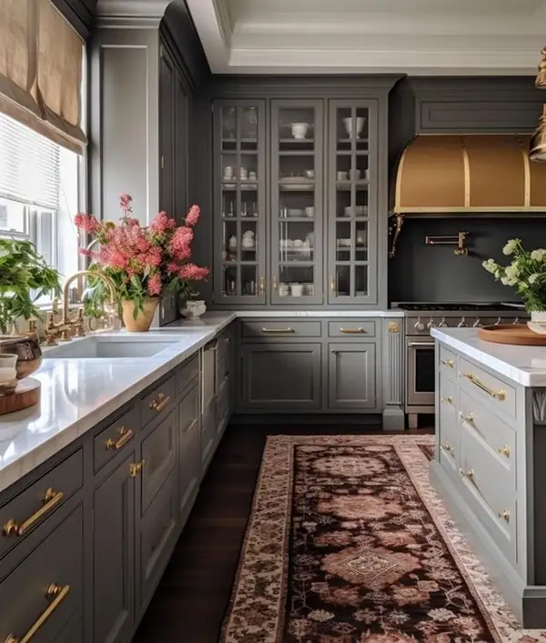 یکی از مواردی که در طراحی این نوع کابینت باید رعایت شود و اصولا مورد توجه طراحان نیز می باشد، رعایت اصل قرینگی است. این مورد باعث جذابیت دکوراسیون آشپزخانه و دل بازتر به نظر رسیدن فضای آشپزخانه می شود.