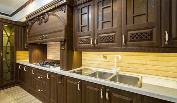 کابینت ممبران گردویی با رنگ گرم و طبیعی خود، جلوه ای لوکس و کلاسیک به آشپزخانه می بخشد. این رنگ غنی و عمیق، حس اصالت و شکوه را به محیط آشپزخانه القا کرده و به راحتی با سبک های مختلف دکوراسیون، از سنتی تا مدرن، هماهنگ می شود. همچنین، ترکیب رنگ گردویی با جزئیات منبت کاری شده یا دستگیره های فلزی، جذابیت این کابینت ها را دوچندان کرده و فضایی دلنشین و گرم را برای شما ایجاد می کند. اگر جز آن دسته از افرادی هستید که به زیبایی محیط خود اهمیت می دهند، بی شک کابینت های ممبران گردویی گزینه بسیار مناسبی برای شما خواهند بود.