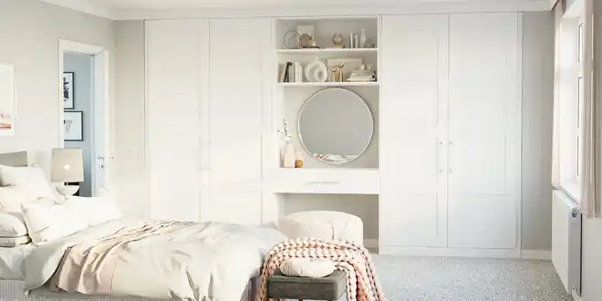 ادغام کمد دیواری با میز آرایش در یک مجموعه، بهترین راه برای صرفه جویی در فضای اتاق خواب است. به ویژه در اتاق های کوچک، این طراحی باعث می شود ضمن داشتن فضای کافی برای نگهداری لباس ها و وسایل شخصی، جای مناسبی هم برای میز آرایش در اختیار داشته باشید. از طرفی این مدل کمد دیواری با میز آرایش معمولا با طراحی مدرن ساخته می شود و به خوبی با سبک های مختلف دکوراسیون هماهنگ می گردد.