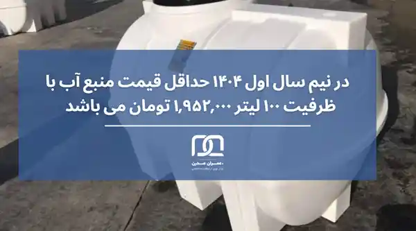 در حال حاضر قیمت انواع منبع آب به دلیل تغییرات نرخ ارز و هزینه مواد اولیه دارای نوسان می باشند. به عنوان مثال، قیمت منبع پلی ‌اتیلن از حدود ۵,۱۰۰,۰۰۰ تومان برای حجم‌ ۵۰۰ لیتری تا ۱۱۹,۰۰۰,۰۰۰ تومان برای منبع ۲۰۰۰۰ لیتری متغیر است.