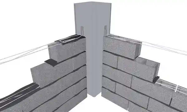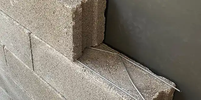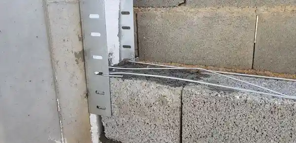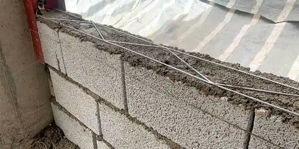 همچنین عدم رعایت فاصله گذاری مناسب یا قرار نگرفتن کامل میلگرد در ملات، کارایی و عملکرد آن را کاهش می دهد. تطابق با طراحی از دیگر نکاتی است که باید به آن توجه شود. مهندسان سازه باید نوع و تعداد میلگرد های بستر را با توجه به نوع دیوار و شرایط محیطی طراحی کنند. عکس میلگرد بستر زیر، اجرای دیوار به کمک والپست و میلگرد بستر را نشان می دهد.