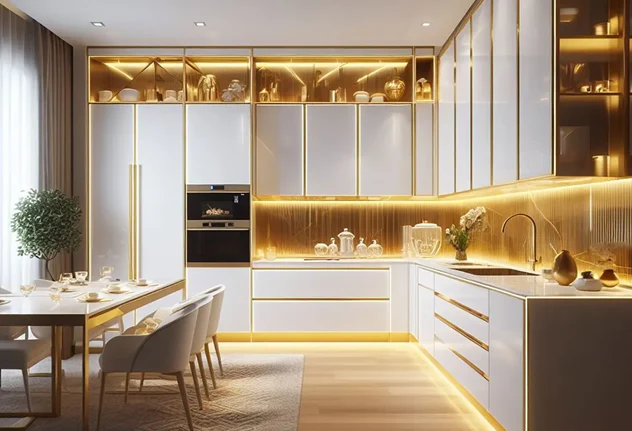 کابینت های گلاس سفید طلایی اکلیلی دارای مزایا و ویژگی های متعددی است که آن را به گزینه ای محبوب در طراحی دکوراسیون داخلی تبدیل کرده است. یکی از مهم ترین ویژگی های آن، درخشندگی و انعکاس بالای نور است که باعث می شود فضا بزرگ تر، روشن تر و لوکس تر به نظر برسد. علاوه بر آن، ظاهر یکدست و درخشان این کابینت ها باعث می شود تا زیبایی محیط شما دو چندان شود. از طرف دیگر سطح صاف و صیقلی این کابینت ها به راحتی تمیز می شود و گرد و غبار یا لکه ها به آسانی با یک دستمال مرطوب پاک می گردند. بنابراین اگر به نظافت و تمیزی محیط خود اهمیت می دهید، کابینت های گلاس سفید طلایی انتخاب مناسبی برای شما خواهد بود.